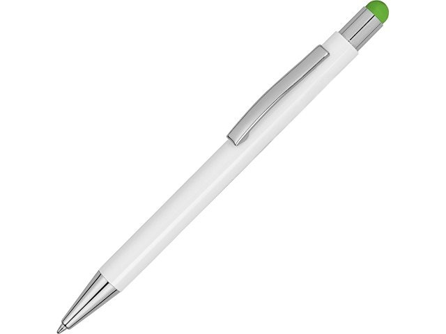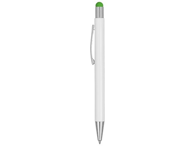 Металлическая шариковая ручка с нажимным механизмом и ярким стилусом.