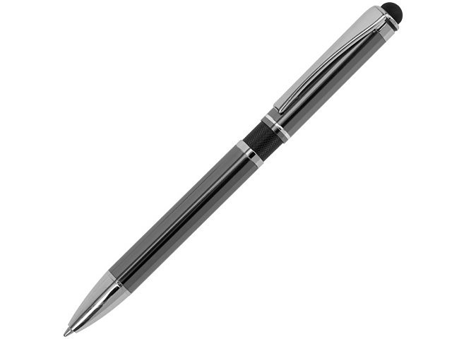 Шариковая ручка оснащена стилусом на кончике корпуса, который совместим со всеми современными смартфонами и планшетами. Корпус цвета оружейной стали — идеальный вариант для гравировки, которая вскрывается серым матовым цветом и очень органично выглядит на ручке и красиво сочетается с цветной вставкой на корпусе. - синие чернила - стилус - яркая цветная вставка