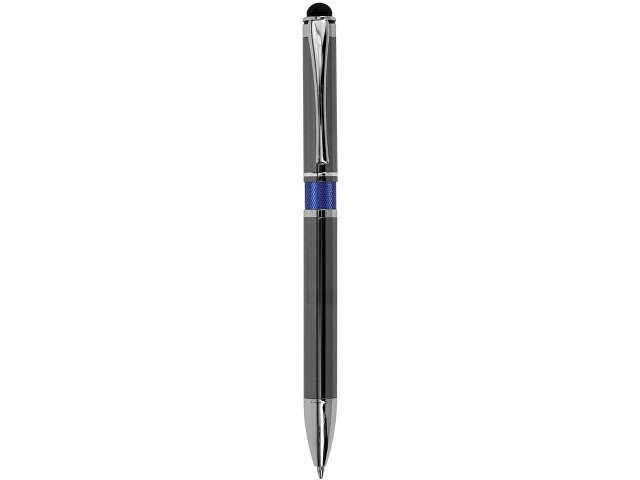 Шариковая ручка оснащена стилусом на кончике корпуса, который совместим со всеми современными смартфонами и планшетами. Корпус цвета оружейной стали — идеальный вариант для гравировки, которая вскрывается серым матовым цветом и очень органично выглядит на ручке и красиво сочетается с цветной вставкой на корпусе. - синие чернила - стилус - яркая цветная вставка