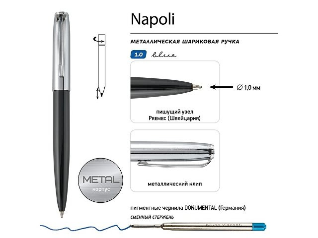 Ручка металлическая шариковая "Napoli", черный/серебристый