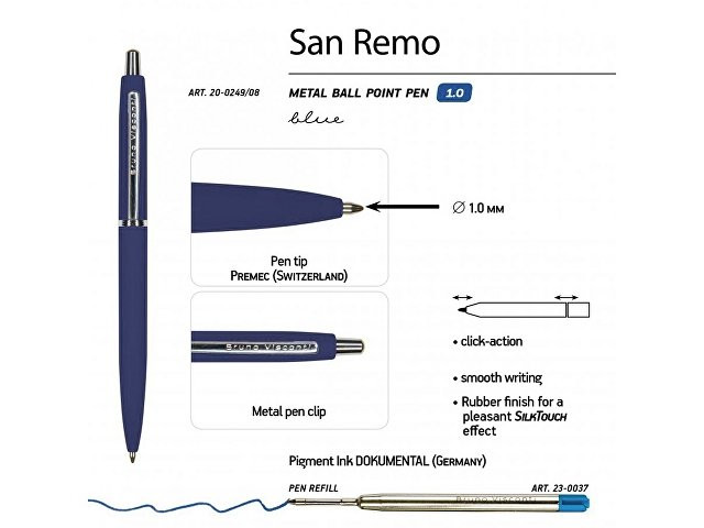 Ручка металлическая шариковая «San Remo», 1,0мм, синие чернила, ярко-синий