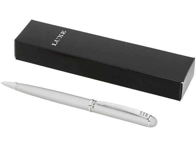 Расчет нанесенияШариковая ручка. Эксклюзивная поворотная шариковая ручка. Предлагается глянцевый черный, матовый серебряный и матовый синий цвета. Предлагается в подарочной коробке LUXE (16 x 5 x 2,5 см). Металл.