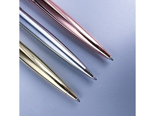 Стильная и строгая автоматическая шариковая ручка «Sienna». Металлический корпус выполнен в цвете розовое золото. Качественные чернила Dokumental (Германия) и пишущий узел Premec (Швейцария) обеспечивают мягкое и приятное письмо. Отличный вариант ручки как для повседневной работы, так и для корпоративного подарка!