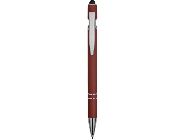 Ручка металлическая soft-touch шариковая со стилусом «Sway», темно-красный/серебристый