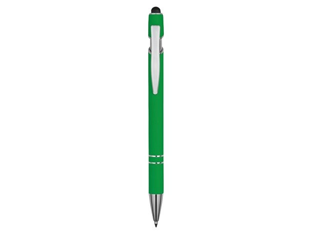 Ручка металлическая soft-touch шариковая со стилусом «Sway», зеленый/серебристый