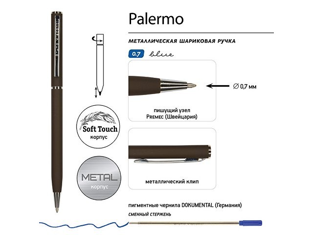 Ручка шариковая автоматическая BrunoVisconti® "PALERMO" цвет корпуса коричневый, soft-touch, 0.7 мм