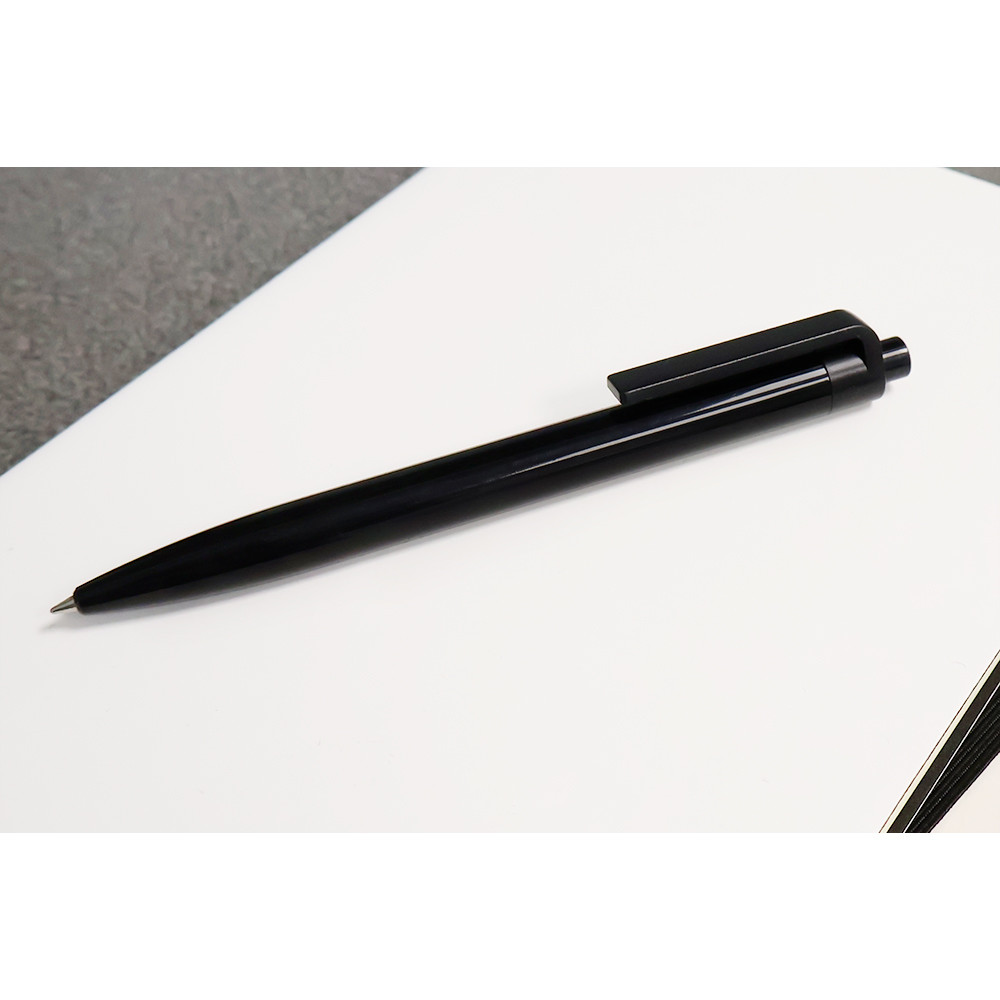 Отличная недорогая ручка в пластиковом корпусе с матовым клипом. Толщина письма - 0,7мм, синие чернила, нажимной надёжный механизм.