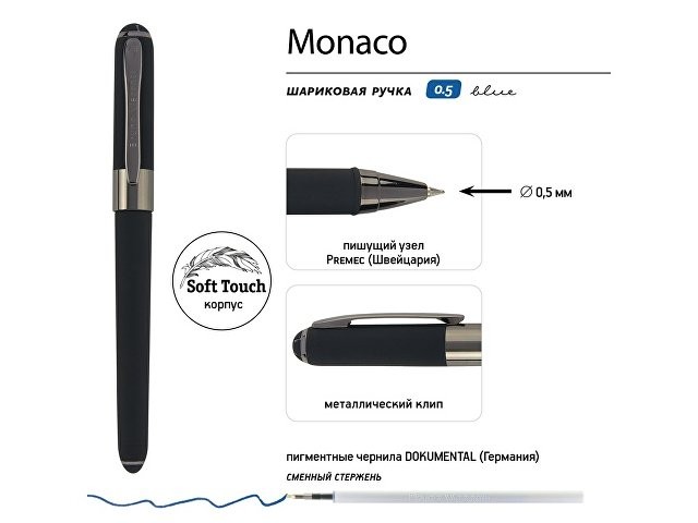 Ручка пластиковая шариковая «Monaco», 0,5мм, синие чернила, черный/вороненая сталь