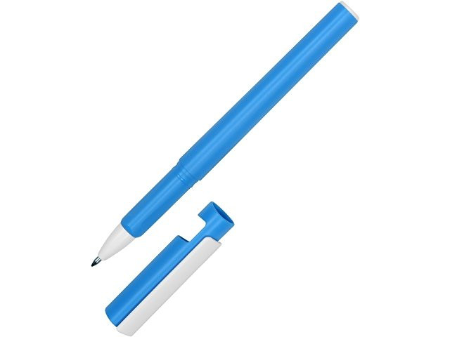 Ручка пластиковая шариковая трехгранная «Nook» с подставкой для телефона в колпачке, голубой/белый