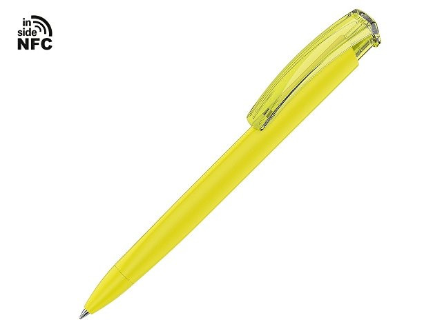 Пластиковая шариковая ручка «Trinity K transparent Gum» soft-touch» с чипом передачи информации NFC обеспечивает быстрый доступ к рекламной информации. Для передачи данных посредством технологии NFC смартфон или планшет, которые поддерживают данную технологию, необходимо поднести к запрограммированной на ручке метке NFC (метка расположена под логотипом NFC). После этого на смартфоне или планшете откроется запрограммированная ссылка на сайт, ролик или начнется загрузка другой информации (заранее загруженной в сеть интернет). Таким образом метка работает как код, при чтении которого смартфон или планшет открывает определенную программу, активирует функцию или ссылку. Можно запрограммировать на метке NFC адрес сайта, каталог и другие рекламные материалы и раздавать вместо визиток. Метка NFC активирует одно действие на смартфоне или планшете. Внимание, программирование метки производится только компанией UMA. Если вы разместили заказ на ручку с меткой, но не прислали информацию, которую необходимо на нее записать, в заказе может быть отгружена ручка без чипа NFC.