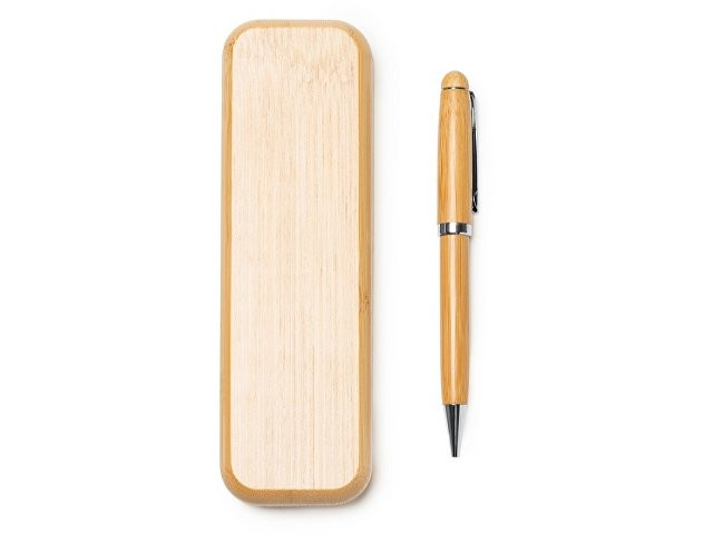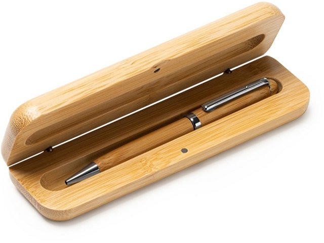 Шариковая ручка из бамбука с металлическими деталями. Поставляется в бамбуковом футляре на магните