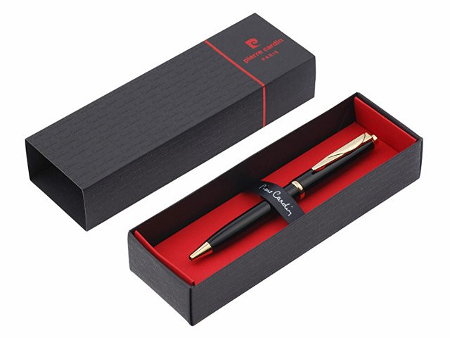 Шариковая ручка Pierre Cardin GAMME Classic • Корпус - латунь. Цвет - черный; • Отделка - лакированное покрытие; • Детали дизайна - сталь/позолота; • Упаковка - картонная коробочка черного цвета с картонным ложементом красного цвета; • Размер упаковки -175 х 55 х 35 мм, вес 35 гр Комплектация: • Металлический шариковый стержень с логотипом Pierre Cardin на корпусе с чернилами синего цвета; • Инструкция по использованию ручки. Ручки Pierre Cardin серии GAMME Classic имеют классическую форму и представлены в самых основных корпоративных цветах: черный, красный, синий, серебристый или стальной. Специально подобранные элементы дизайна золотистого и серебристого цветов выгодно подчеркивают стиль каждой модели. Толщина пишущего узла (толщина линии) - 0,9 мм Диаметр шарика - 1 мм