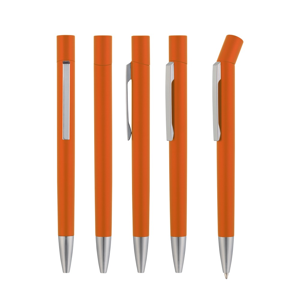 Ручка с металлическим клипом; корпус выполнен из металлизированного (metalic) ABS-пластика. Уникальный поворотный механизм – изюминка модели.