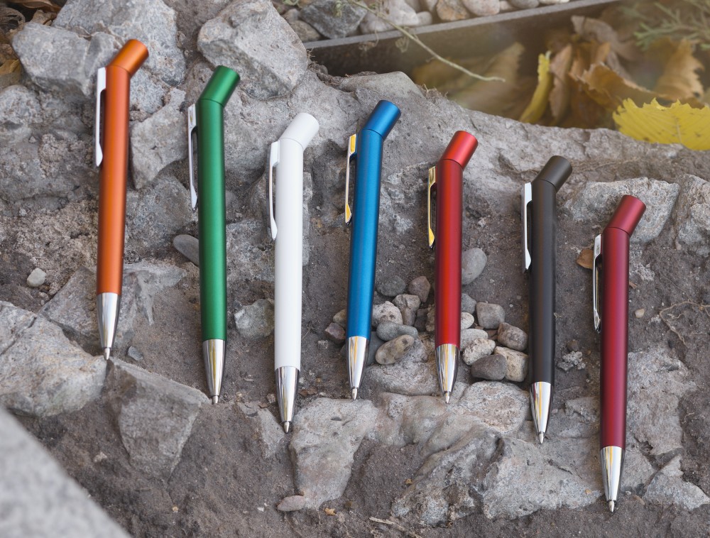 Ручка с металлическим клипом; корпус выполнен из металлизированного (metalic) ABS-пластика. Уникальный поворотный механизм – изюминка модели.