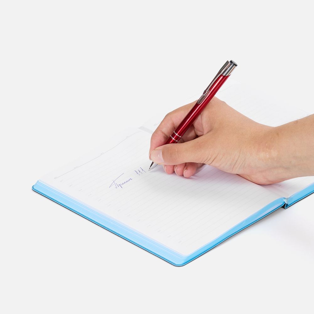 Яркая шариковая ручка с глянцевым цветным корпусом и хромированными деталями.