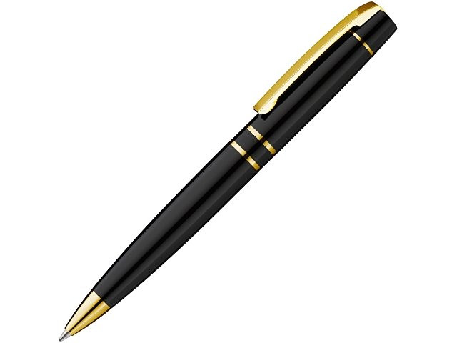 Металлическая шариковая ручка с поворотным механизмом и пружинным клипом. Фурнитура с позолоченной отделкой. Европейский объемный стержень в металлическом корпусе с наконечником из нержавеющей стали и вольфрамово-карбидным шариком (1,0 мм). Длина письма: примерно 10 000 м. Немецкие чернила соответствует стандарту ISO. Произведено в Германии.