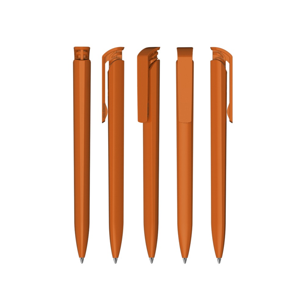 Необычная шестигранная ручка удобно ложится в руку. Корпус с напылением soft touch дополнен глянцевым клипом. Плоские грани корпуса и массивный глянцевый клип превосходно дополнит нанесение тампопечатью и объемной УФ-печатью.
