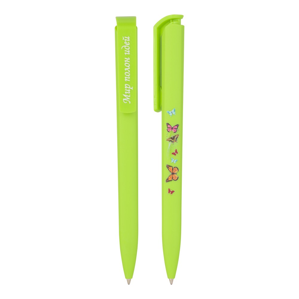 Необычная шестигранная ручка удобно ложится в руку. Корпус с напылением soft touch дополнен глянцевым клипом. Плоские грани корпуса и массивный глянцевый клип превосходно дополнит нанесение тампопечатью и объемной УФ-печатью.