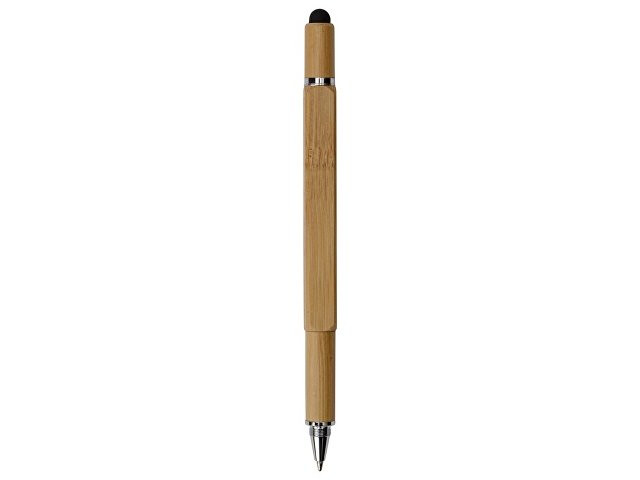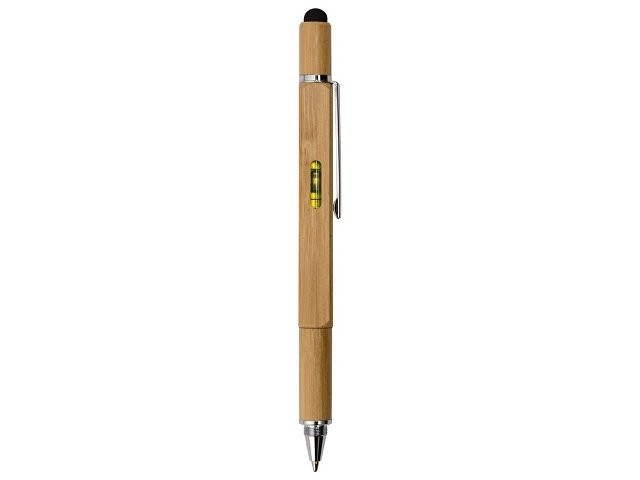 Четырехгранная шариковая ручка с поворотным механизмом в бамбуковом корпусе сочетает несколько полезных функций: • Стилус для работы с устройствами с сенсорными экранами. • Линейка на 7 см. • Под стилусом располагаются крестовая и плоская отвертки (2 в 1). • Стальной клип надежно удерживает ручку в кармане. • В корпус встроен уровень для определения углового отклонения от горизонтальной или вертикальной поверхности. • Колпачок можно накрутить сверху или снизу ручки. • Возможность нанесения логотипа на две грани ручки.