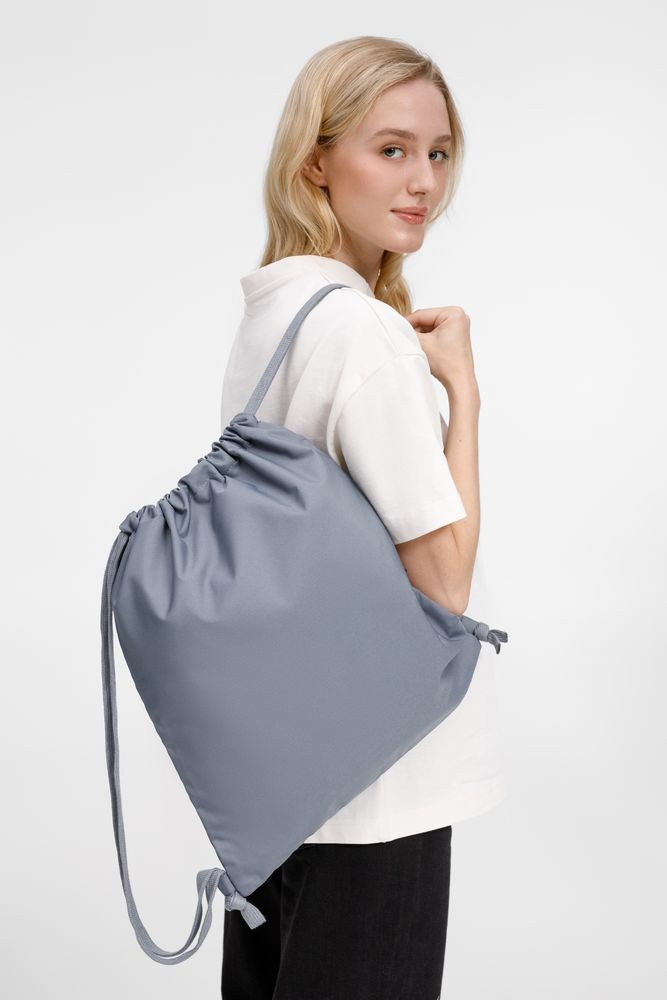 Прочный и вместительный рюкзак на шнурках разработан в рамках единой коллекции одежды и аксессуаров, поэтому легко комбинируется с ее элементами. Специально спроектированные лекала и технологии пошива открывают простор для любых вариантов кастомизации и нанесения изображений. На видимой части изделий нет лейблов с айдентикой бренда, а название бренда с уходника легко удалить.
