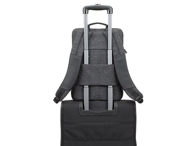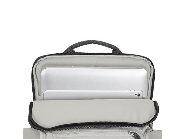 Рюкзак для MacBook Pro 15" и Ultrabook 15.6". Описание: • Рюкзак для деловых поездок. • Изготовлен из плотной искусственной кожи и полиэстера для защиты ноутбука от случайных ударов и царапин, а также от пыли и влаги. • Отделение для ноутбука защищено водостойкой молнией, имеет мягкие стенки, карман для планшета до 10.1". Дно имеет дополнительную мягкую вкладку для защиты гаджета. • Передний карман на молнии для хранения аксессуаров, зарядного устройства, авторучек, смартфона. • Внутреннее пространство разделено на отделение для документов, два кармана на молнии и карман для воды или зонта. • Удобная мягкая ручка для переноски и наплечные ремни со смягчающими подкладками помогут чувствовать себя комфортно в самом долгом путешествии. • На задней стенке имеется ремень крепления к багажной сумке и скрытый карман на молнии для смартфона, бумажника. • Специальная система крепления ремешков на липучке закрепляет их и создает дополнительное удобство. Размер отделения для ноутбука: 270 x 385 x 35 мм.
