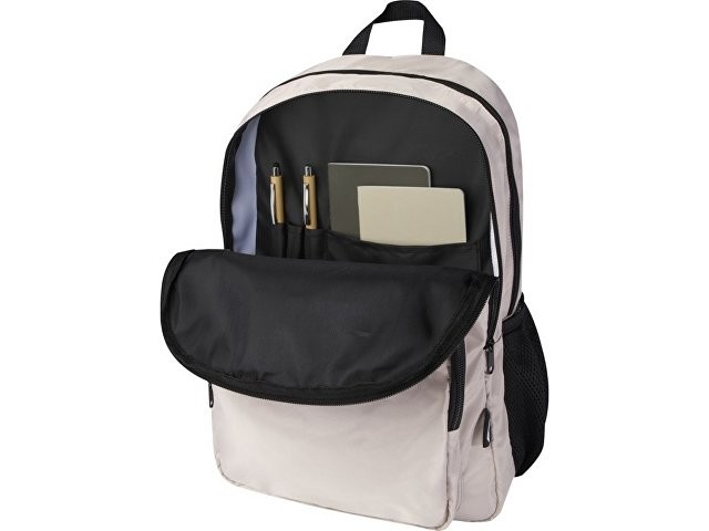 Рюкзак Trend Plus изготовлен из сертифицированной согласно GRS переработанной мягкой и немнущейся ткани и качественной подкладки из RPET. Рюкзак оснащен отделением для ноутбука диагональю 15", отделением-органайзером, передними карманами на молнии, боковыми эластичными сетчатыми карманами и сетчатой вентилируемой задней частью с лямкой для крепления к ручке чемодана. Регулируемые плечевые ремни для оптимального комфорта при ношении. Объем: 20 литр. Выдерживает вес до 10 кг. Не содержит ПВХ. GRS certified recycled polyester.