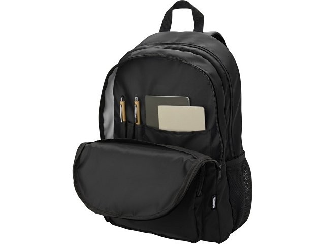 Рюкзак Trend Plus изготовлен из сертифицированной согласно GRS переработанной мягкой и немнущейся ткани и качественной подкладки из RPET. Рюкзак оснащен отделением для ноутбука диагональю 15", отделением-органайзером, передними карманами на молнии, боковыми эластичными сетчатыми карманами и сетчатой вентилируемой задней частью с лямкой для крепления к ручке чемодана. Регулируемые плечевые ремни для оптимального комфорта при ношении. Объем: 20 литр. Выдерживает вес до 10 кг. Не содержит ПВХ. GRS certified recycled polyester.