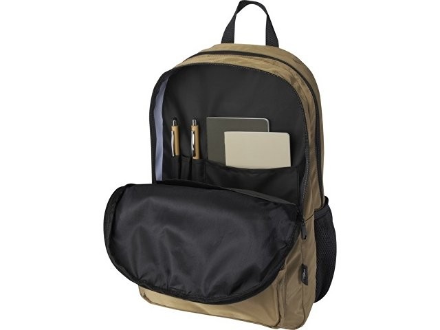 Рюкзак Trend Plus изготовлен из сертифицированной согласно GRS переработанной мягкой и немнущейся ткани и качественной подкладки из RPET. Рюкзак оснащен отделением для ноутбука диагональю 15", отделением-органайзером, передними карманами на молнии, боковыми эластичными сетчатыми карманами и сетчатой вентилируемой задней частью с лямкой для крепления к ручке чемодана. Регулируемые плечевые ремни для оптимального комфорта при ношении. Объем: 20 литр. Выдерживает вес до 10 кг. Не содержит ПВХ. GRS certified recycled polyester.