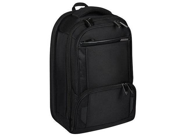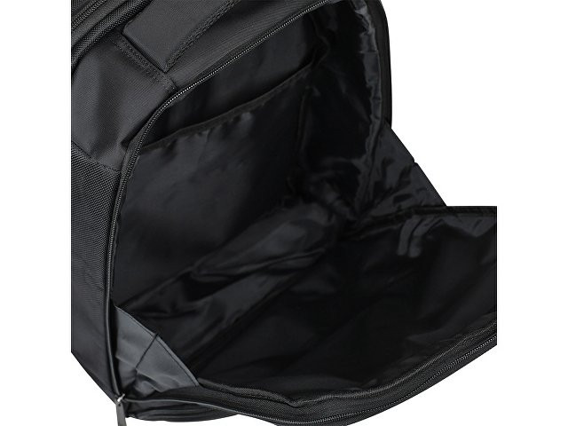 Рюкзак для ноутбука с двумя наружными фронтальными карманами на молнии. Одно отделение для ноутбука. Второе широкое отделение можно использовать для одежды при поездках в командировку. Сбоку сетчатый карман для зонта или бутылки. Сетчатая спинка. Лямки регулируются по длине.