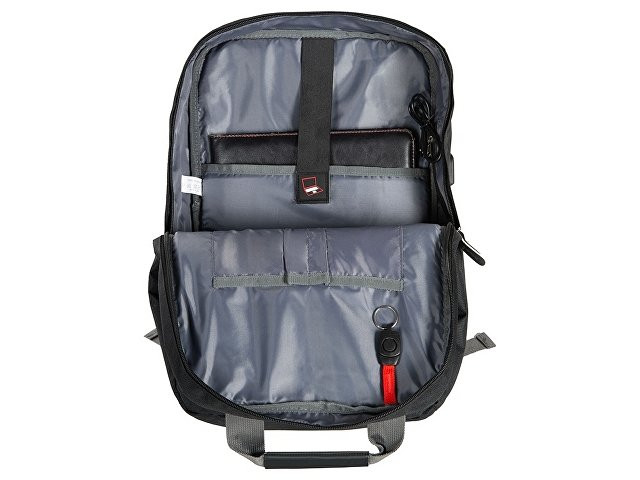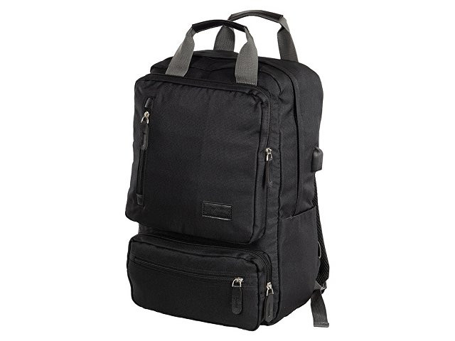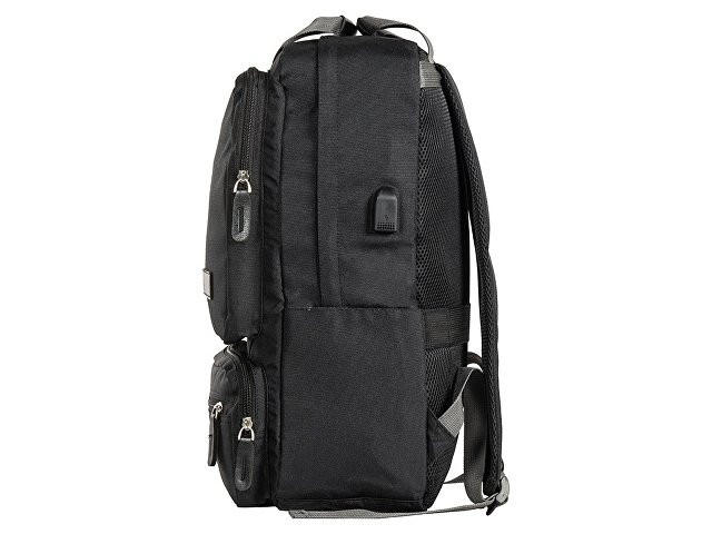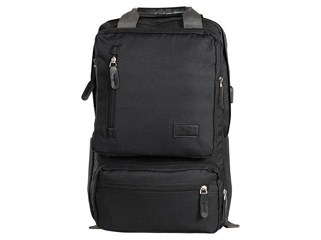 Рюкзак, в котором можно разместить все необходимое: - 2 наружных отделения на молнии, каждое из которых имеет карман на молнии, - 2 боковых кармана, - внутри органайзер, - отделение для ноутбука, - USB разъем, - сетчатая спинка, - 2 ручки вверху для большего удобства, - карабин для ключей внутри, - отделка из искусственной кожи на наружном кармане и на бегунках