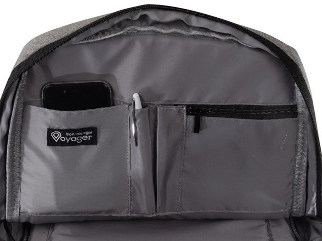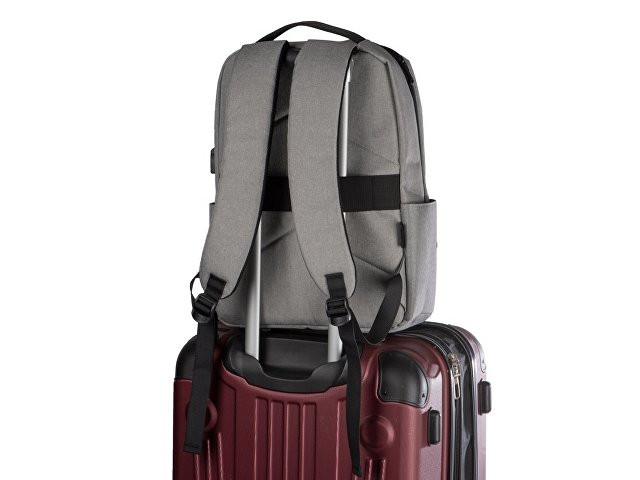 Отличный функциональный бизнес-рюкзак оснащен всем необходимым: - 2 боковых наружных кармана - наружный вертикальный карман - внутри карман для ноутбука 15" - органайзер с карманами на молнии - USB выход - ремень для крепления на чемодан - регулируемые по длине лямки - нетканый мешок для хранения в комплекте Прочный полиэстер устойчив к истиранию, что обеспечивает качество и долговечность рюкзака. А низкая водонепроницаемость убережёт ноутбук и другие важные предметы от намокания. За счёт большого поля для нанесения на лицевой части рюкзака вы можете разместить на нем не только логотип, но и полноценный принт, сделав свой мерч ещё привлекательнее!