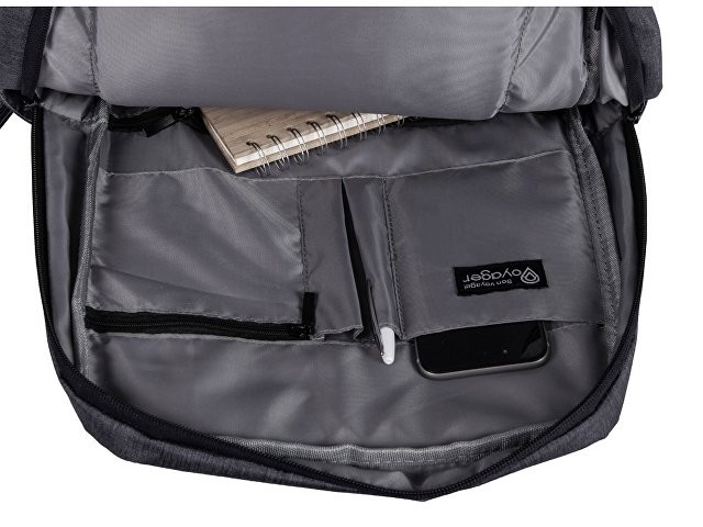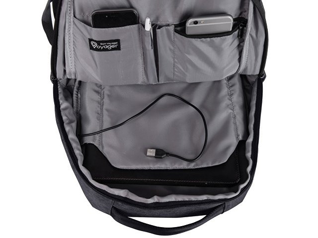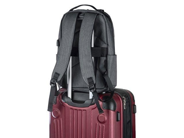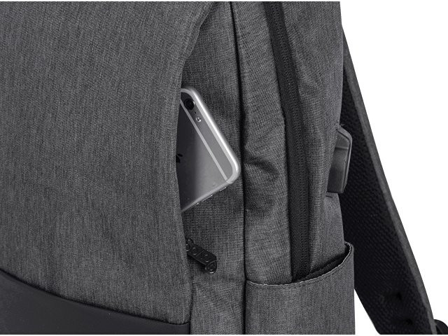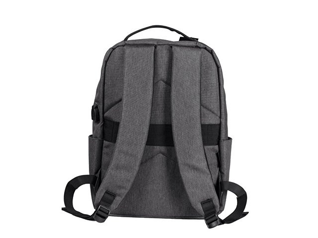 Отличный функциональный бизнес-рюкзак оснащен всем необходимым: - 2 боковых наружных кармана - наружный вертикальный карман - внутри карман для ноутбука 15" - органайзер с карманами на молнии - USB выход - ремень для крепления на чемодан - регулируемые по длине лямки - нетканый мешок для хранения в комплекте Прочный полиэстер устойчив к истиранию, что обеспечивает качество и долговечность рюкзака. А низкая водонепроницаемость убережёт ноутбук и другие важные предметы от намокания. За счёт большого поля для нанесения на лицевой части рюкзака вы можете разместить на нем не только логотип, но и полноценный принт, сделав свой мерч ещё привлекательнее!