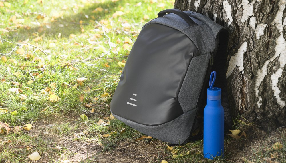 С внешней боковой стороны рюкзака расположен USB разъем для подзарядки вашего устройства (внутри рюкзака расположен кабель для соединения с power bank) и два боковых кармана на молнии.