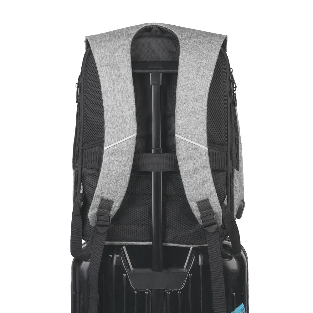 Мягкая спинка с внутренним карманом на молнии и лентой, чтобы расположить ваш рюкзак на ручке чемодана.