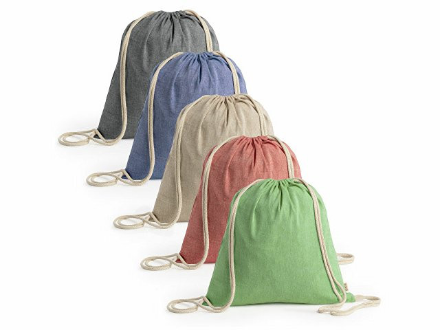 Рюкзак-мешок из переработанного хлопка плотностью 120 г/м² с меланжевой отделкой и шнурками натурального цвета. Доступен в различных цветах.