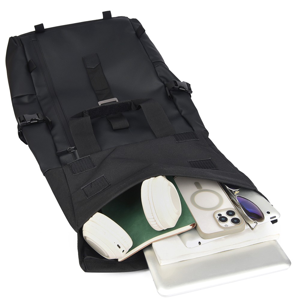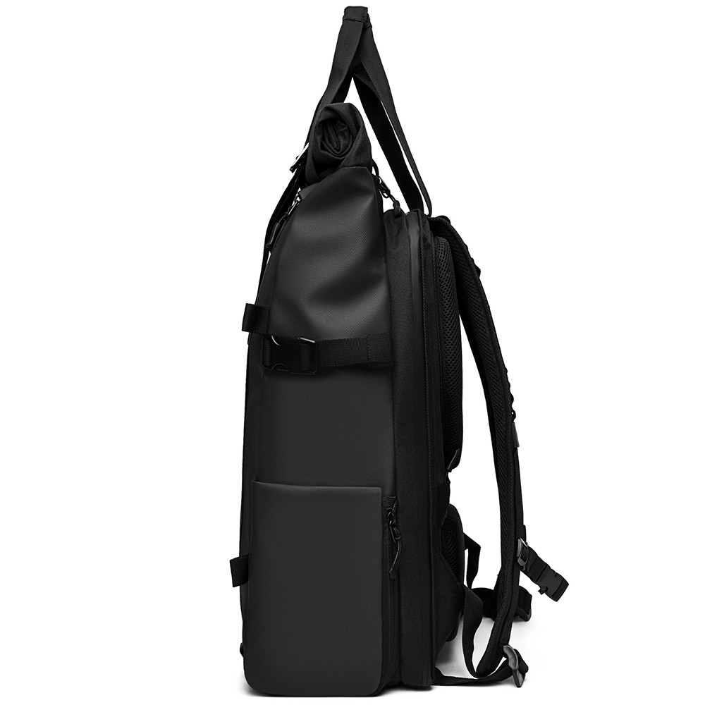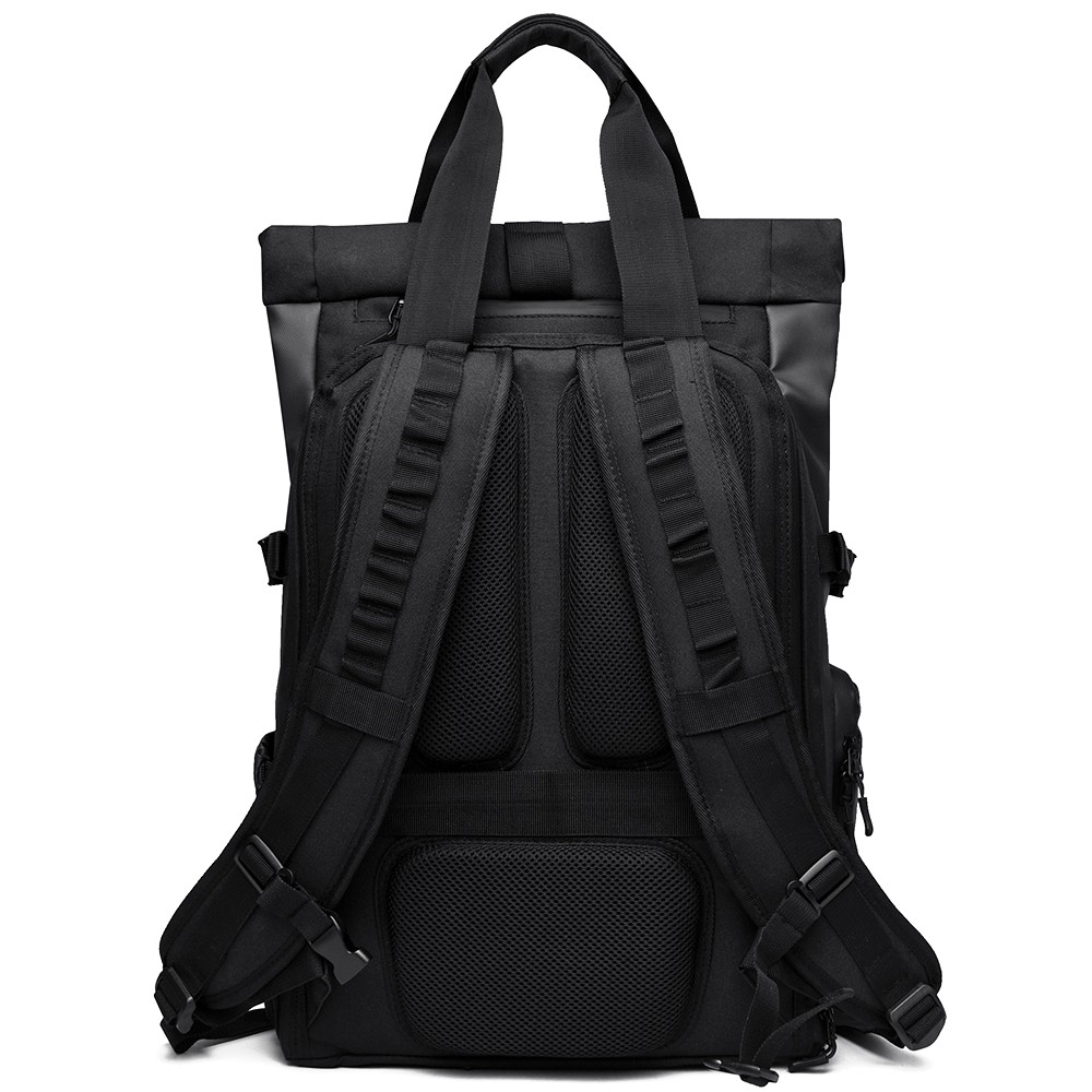 Ультранавороченный рюкзак для города и путешествий PARKER. Его особенности - этот большеформатный рюкзак сделан из особо прочного полиэстера плотностью 900 D покрытого влаго- и грязезащитной полиуретановой пропиткой, устойчивой к широкому диапазону температур. Одно большое ролл-топ отделение имеет два входа: Первый, сверху - укреплённый пластиком край рюкзака фиксируется липучками-велькро и регулируемым по длине ремеём с металлической застёжкой с возможностью увеличкения и фиксации объёма на пяти уровнях, Второй, АНТИКРАЖНЫЙ сзади - на водонепроницаемой молнии со скрытым звеном и возможностью открыва на 180 градусов. Внутри уплотнённые карманы для ноутбука до 15,6 дюймов и планшета до 10 дюймов с клапаном на велькро, карман-органайзер для аксессуаров и ЭКСКЛЮЗИВНАЯ ОПЦИЯ - специальный карман-сетка ДЛЯ АРОМАСАШЕ. На передней стенке большой вертикальный карман на водонепроницаемой молнии со скрытым звеном. Два боковых кармана значительно расширяют функционал: один на водонепроницаемой молнии со скрытым звеном с карманом-сеткой для мелких гаджетов внутри. Второй, открытый с возможностью увеличения объёма с помощью молнии позволит разместить бутылку, зонт и всё что необходимо для быстрого доступа ПОТАЙНОЙ КАРМАН на скрытой молнии на дне надёжно защитит, а подвесной карман вверху задней стенки обеспечит быстрый доступ к самым необходимым вещам. Задняя стенка усилена пластиковой прокладкой, а специальная накладка для чемодана и скрытый под ней карман на молнии делают этот рюкзак незаменимым спутником для путешествий. Двойное уплотнение анатомических накладок на задней стенке распределяет его вес и снижают нагрузку на позвоночник. Гигроскопичная вентилируемая трехслойная 3D-сетка на накладках задней стенки и подкладке плечевых ремней предотвращает скольжение и обеспечивает отличную вентиляцию и комфорт при контакте с кожей и одеждой. Две короткие ручки надёжно закреплены несколькими прострочками и соединяются друг с другом с помощью лентф-велькро, что дополнительно фиксирует объём рюкзака в верхней части. Уплотнённые плечевые ремни регулируются по длине и имеют регулируемый по длене фикастор на застёжке-фастексе на уровне груди и дополнительные петли для фиксации различных аксессуаров и гаджетов. Множество дополниельных петель внутри и снаружи, а также боковые ремни-стяжки на фастексах для регулирования и фиксации бокового объёма завершают весь наворосенный функционал этой модели. Размер: 50(72)*32*18 см Материал: Полиэстер с водонепроницаемой пропиткой (внутренней и внешней) Плотность: 900D Рекомендуемая максимальная нагрузка: не более 10 кг. Вместимость: 26 л. Вес: кг