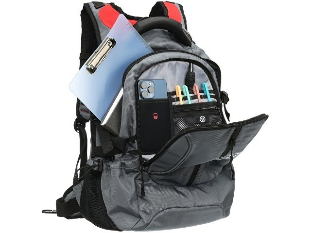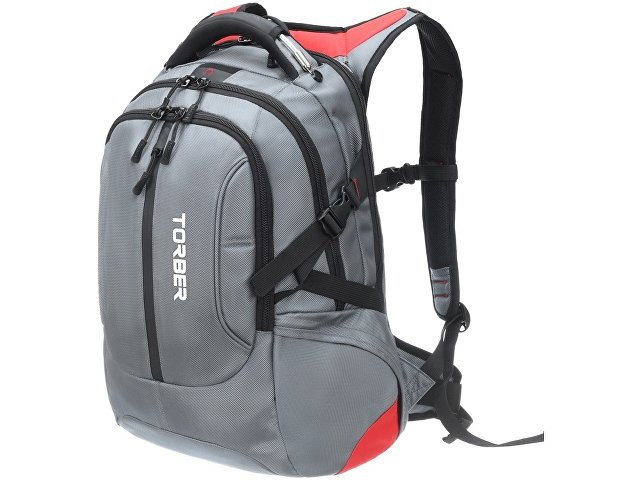 Рюкзак TORBER ДРАЙВ – это идеальное решение для активного человека. Этот рюкзак оборудован специальным отделением для вашего ноутбука с диагональю экрана 15”. Мягкая подкладка надежно защитит ноутбук при переноске. Рюкзак имеет отделение для телефона или зарядного устройства с отверстием для выхода проводов, благодаря которому можно заряжать телефон, не доставая зарядное устройство из рюкзака. Благодаря боковым карманам, вы можете носить с собой бутылку с водой или зонт. Спинка и ремни оборудованы системой циркуляции воздуха. Карман-органайзер и кольцо для ключей позволят вам упорядоченно хранить большое количество мелких вещей. Усиленная эргономичная ручка с металлическим тросом позволяет носить рюкзак не только на спине, но и в руках, когда это необходимо. Поясной ремень для поддержания рюкзака сделает ношение рюкзака еще более удобным. Рюкзак выполнен в сером цвете с красной отделкой, что делает его универсальным и стильным. Объём 30 л позволяет вместить всё необходимое. Функциональная организация: - Отделение подходит для большинства ноутбуков с диагональю экрана до 15'' - Карман с мягкими стенками обеспечивает безопасную и удобную переноску планшетного компьютера или электронной книги - Отверстие для вывода гарнитуры, наушников или зарядного провода в верхней части рюкзака - Карман-органайзер включает ключницу и многочисленные кармашки для пишущих принадлежностей, мобильного телефона, документов и других мелких аксессуаров. - Эргономичные регулируемые плечевые ремни анатомической формы, оснащённые пропускающей воздух набивной подкладкой, обеспечивают максимальное удобство в использовании рюкзака - Спинка рюкзака с системой циркуляции воздуха имеет специальную рельефную поверхность, обеспечивает удобное прилегание к спине и вентиляцию - Прочная ручка с металлическим тросом в основании - Стягивающие ремни позволяют регулировать объём рюкзака, а также ужимать багаж для более удобной транспортировки