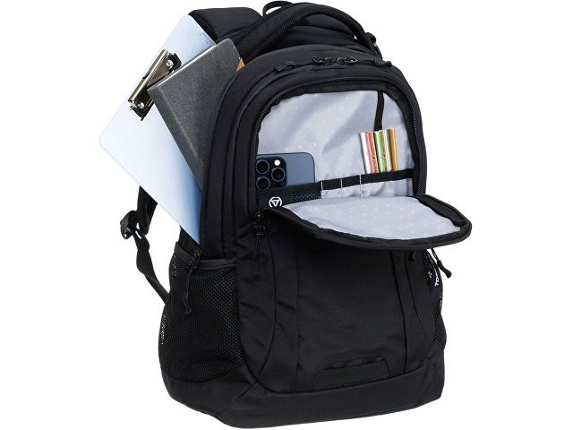 Городской рюкзак TORBER РАКЕТА T2376 - это отличное решение для тех, кто живёт активной жизнью, предпочитает чёрный цвет и минимализм, но при этом чтобы всё необходимое было легко доступно и упорядоченно. Карман-органайзер и кольцо для ключей позволят вам упорядоченно хранить большое количество мелких вещей, необходимых в дороге. Спинка рюкзака с системой циркуляции воздуха имеет специальную рельефную поверхность, обеспечивающую удобное прилегание к спине Благодаря прочной эргономичной ручке вы можете носить рюкзак не только на спине, но и в руках. Два эластичных боковых кармана позволят вам носить зонт или бутылки с водой. Регулируемые плечевые ремни позволяют вам выбрать максимально удобно положение рюкзака на спине. Благодаря объёму 24 л у вас есть возможность взять с собой всё необходимое. Функциональная организация: - Мягкое отделение подходит для большинства ноутбуков с диагональю экрана до 15”; - Карман-органайзер включает в себя брелок для ключей и различные разделительные