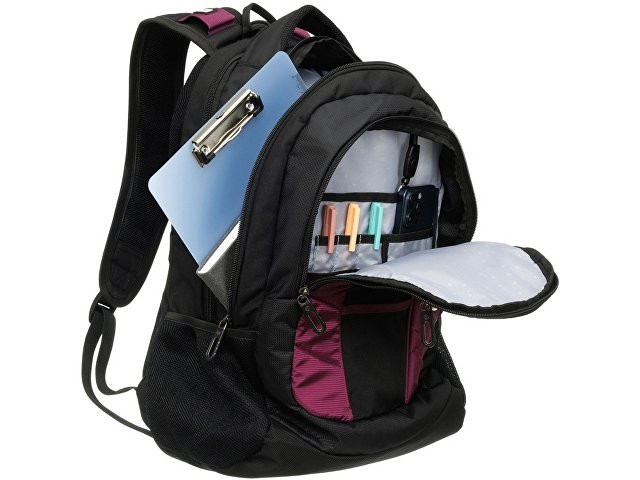 Рюкзак TORBER ПРОРЫВ с отделением для ноутбука 15", чёрный/бордовый, полиэстер 600D, 35x20x47 см, 33л
