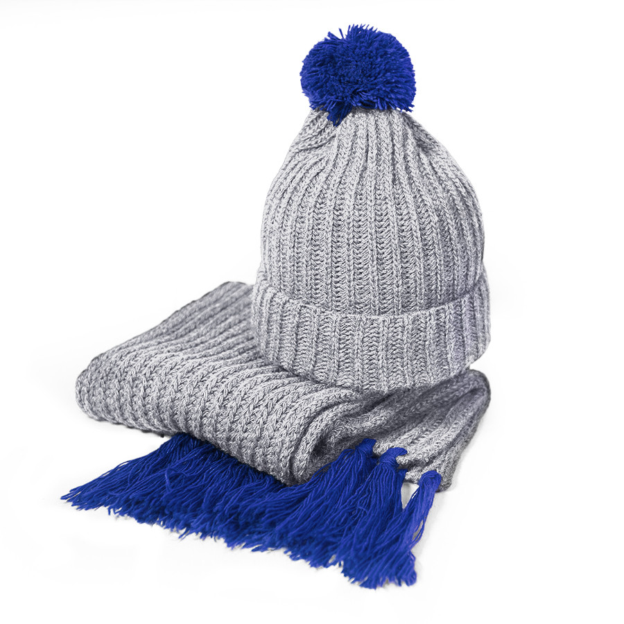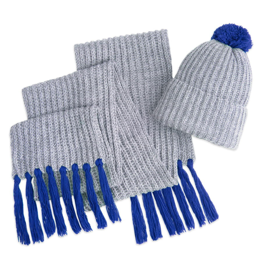 Шапка и шарф GoSnow с ярким помпоном и кисточками, Синий
