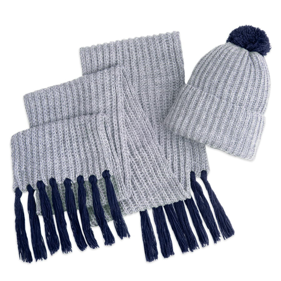 Шапка и шарф GoSnow с ярким помпоном и кисточками, Темно-синий