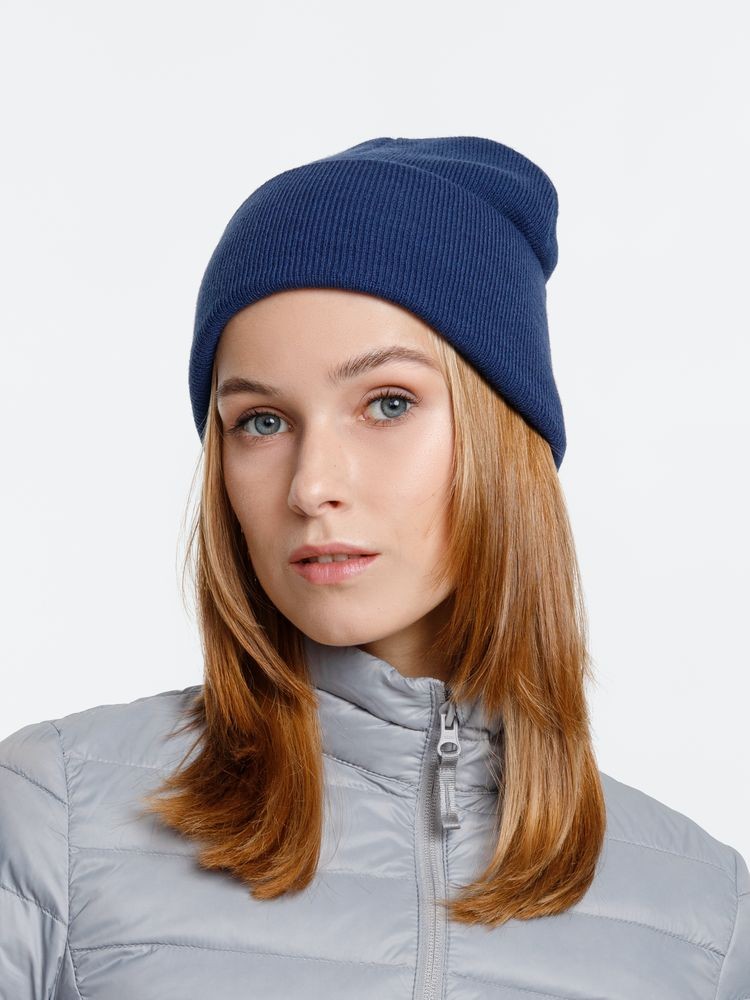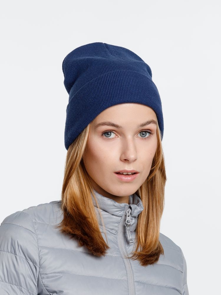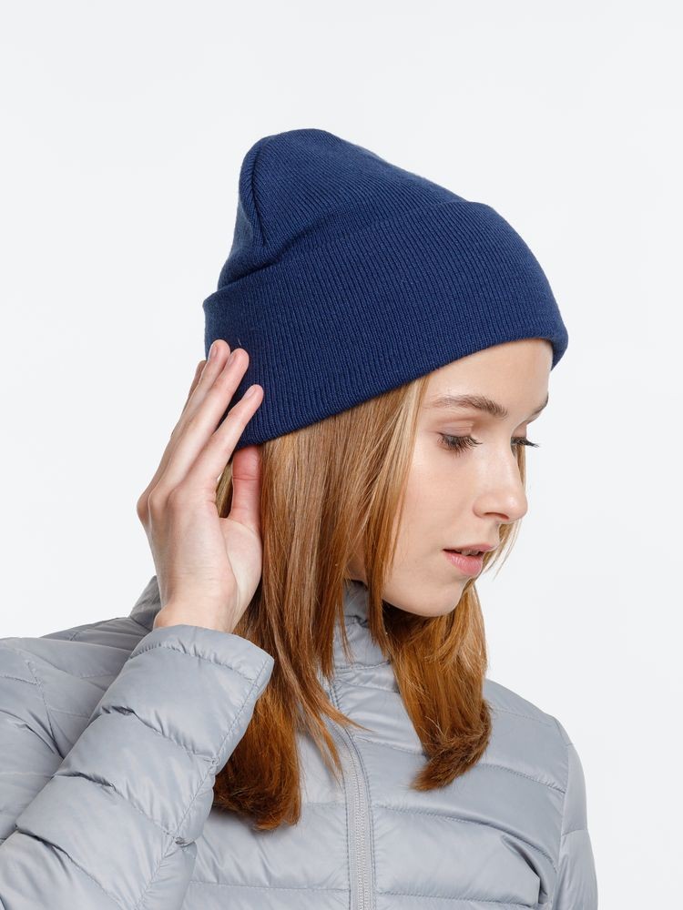 Двухслойная шапка из акриловой пряжи с регулируемым отворотом 7–10 см.