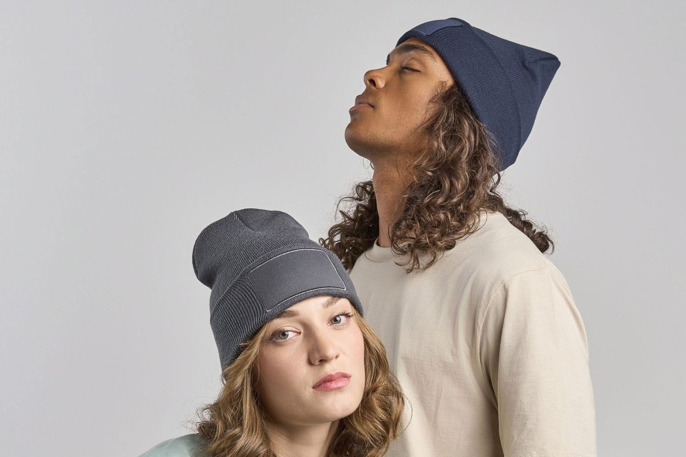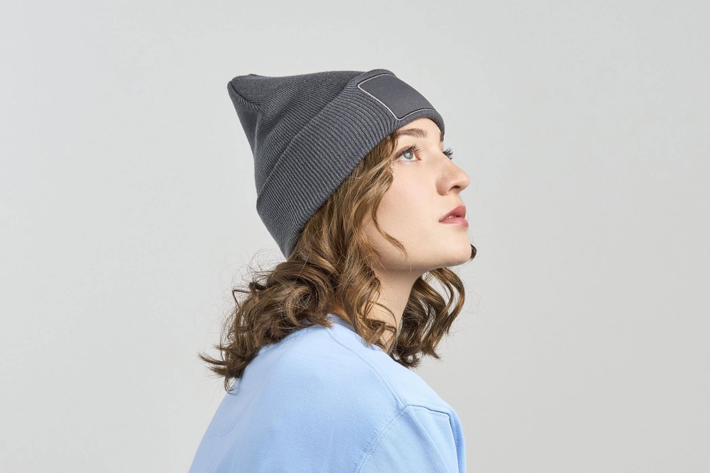 Шапка вязаная двойная Wind-S с патчем, Темно-синий