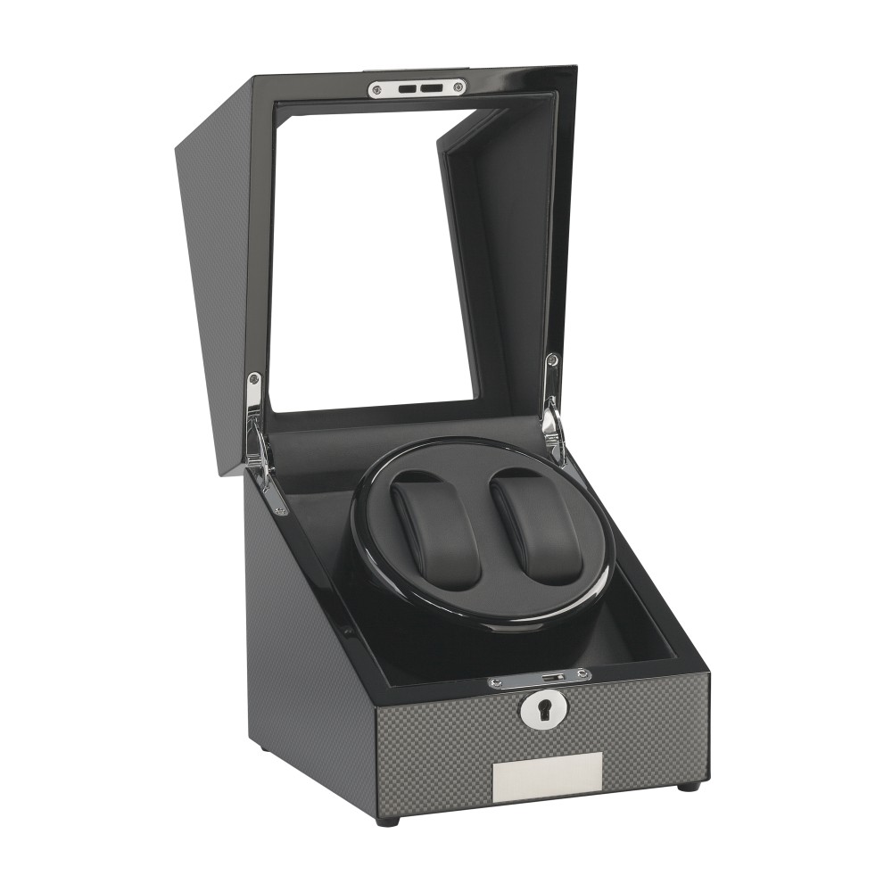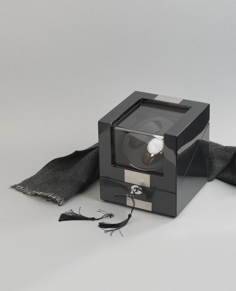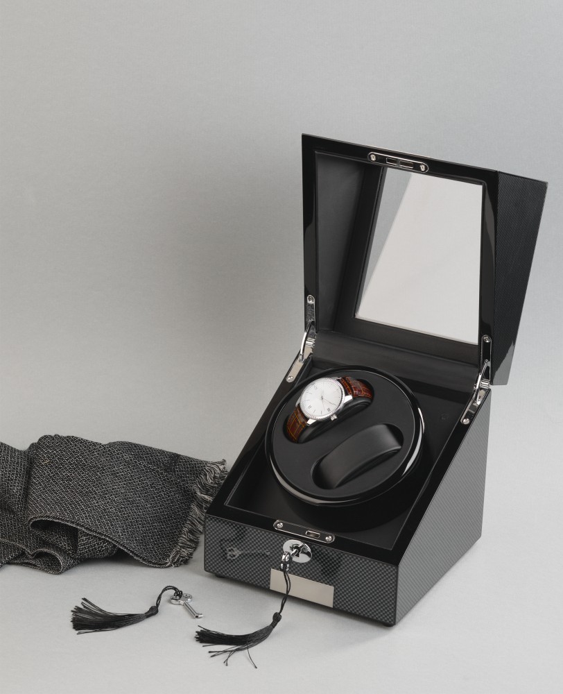 Шкатулка из дерева для часов с подзаводом, черный с серым