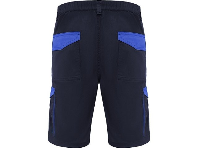 Шорты в двухцветной комбинации - Удобная и регулируемая ткань. - Контрастные петли для ремня, клапаны, складка и кант по краю кармана - Эластичный пояс сзади. - Два передних кармана. - Два задних кармана с клапаном и застежкой-липучкой. - Два боковых кармана со складкой и клапаном застегиваются на липучку.