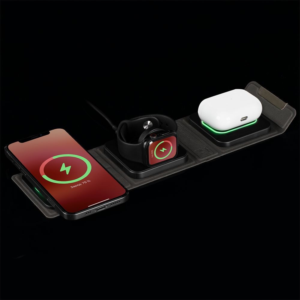 - Зоны беспроводной зарядки для смартфона, наушников и часов