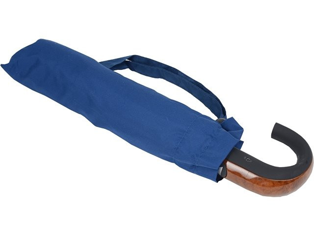 Отличный складной зонт для мужчин оснащен полуавтоматическим механизмом. Удобная рукоятка не скользит в руке, позволяя надежно удерживать зонт. Ручка зонта задекорирована под дерево. На купол можно нанести любое изображение.