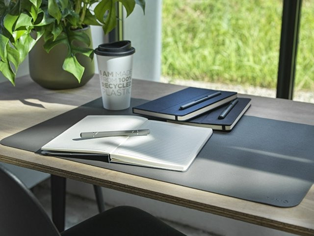 Набор из ручки и блокнота Skribo, сертифицированный RCS, частично изготовлен из переработанного полиэстера, бывшего в употреблении, что делает этот набор более экологичным выбором, поскольку помогает сократить использование первичного сырья. В комплект входит шариковая ручка с черными чернилами и 80 листов в линейку кремового цвета, выполненных из переработанной бумаги плотностью 80 г/м² из экологически чистых источников. Длина непрерывной линии ручки составляет 1000 метров. FSC certified paper. FSC Mix Credit P7 CU-COC-877277.