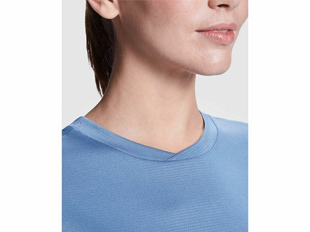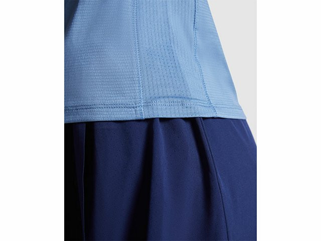 Женская технологическая футболка с короткими рукавами. Легкая ткань из переработанного полиэстера. · Воротник с перекрещенными деталями. · Кокетка сзади и рукава из дышащей ткани. · Направленные вперед и наклонные швы по бокам и плечам. · Закругленный низ. · Комбинация дышащих и эластичных тканей.