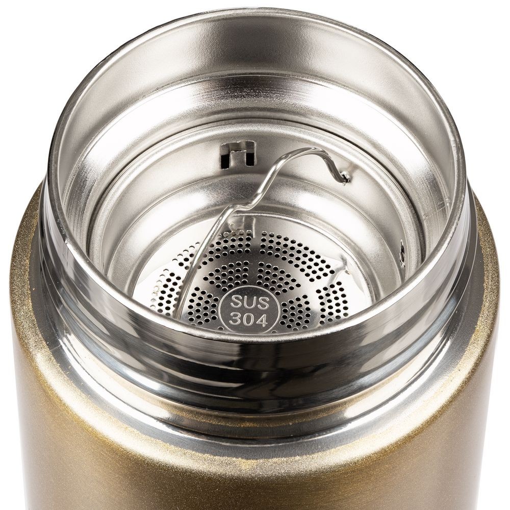 Стенки из нержавеющей стали и вакуумная изоляция корпуса сохраняют напитки горячими (60 °C) в течение 8 часов или прохладными (10 °C) в течение 12 часов. Съемное ситечко помогает удобно и аккуратно заварить в термосе чай, кофе или травяной сбор.Съемная заменяемая батарейка обеспечит до года работы дисплея.
